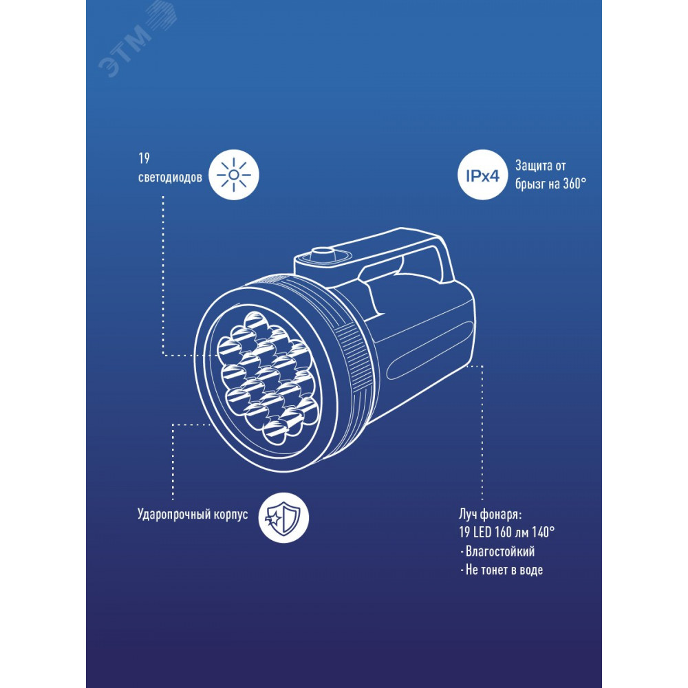 Классический фонарь-прожектор идеален для похода иди рыбалки – не тонет в воде и работает даже на плаву. Луч фонаря – светит как фара автомобиля, направленный свет с ярким пятном засветки в центре. Длина луча – 80 м, время беспрерывной работы – до 27 ч. Работает от 4 батареек типа D либо 1 батарейки типа 4R25. Упакован в коробку с подробной информацией о модели и схемой фонаря.