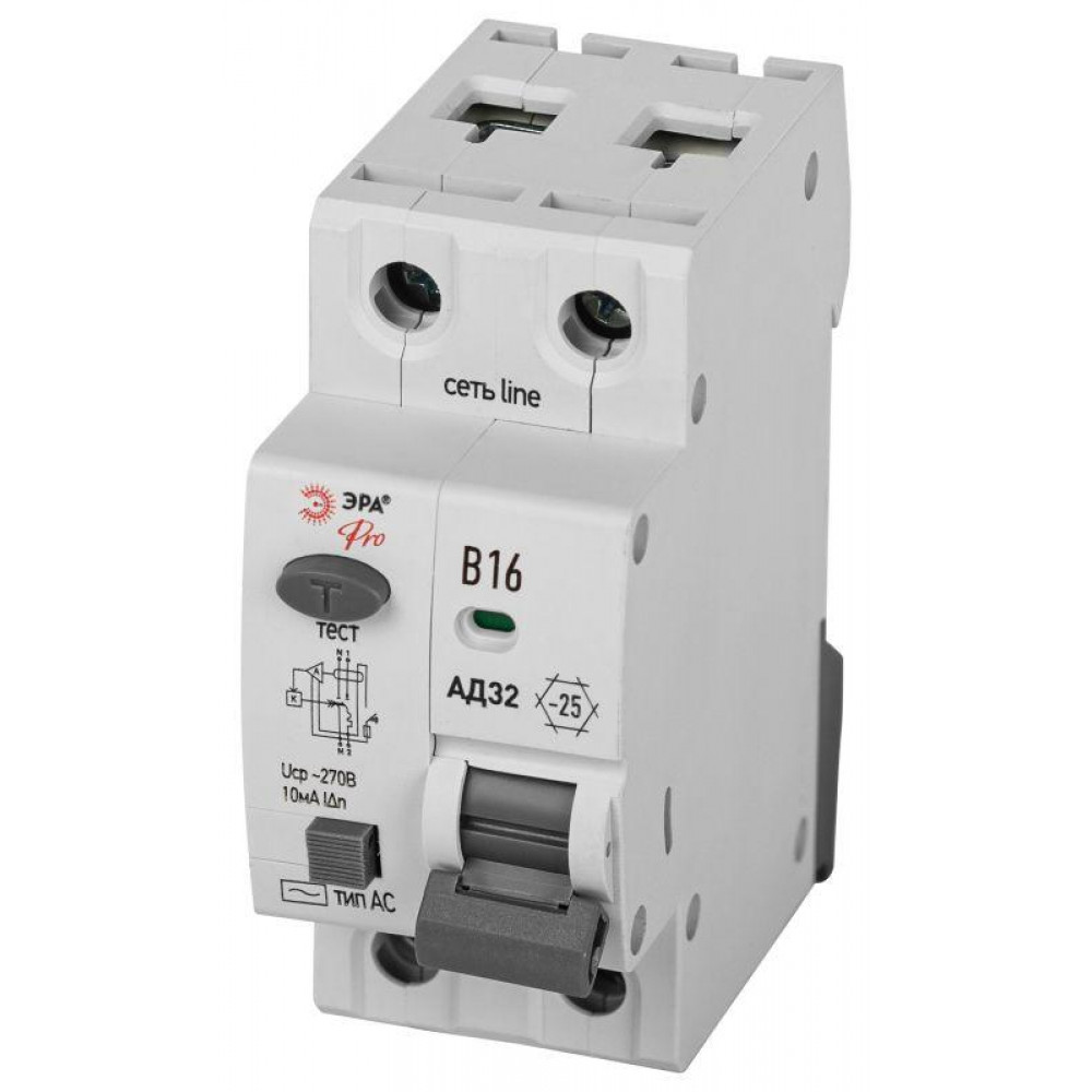 Выключатель автоматический дифференциального тока 1P+N B16 10мА тип АC защита 230В АВДТ 4.5кА PRO D32E2B16АC10P АД32 электронное Б0057368, Дифференциальная защита: УЗО, дифф блок