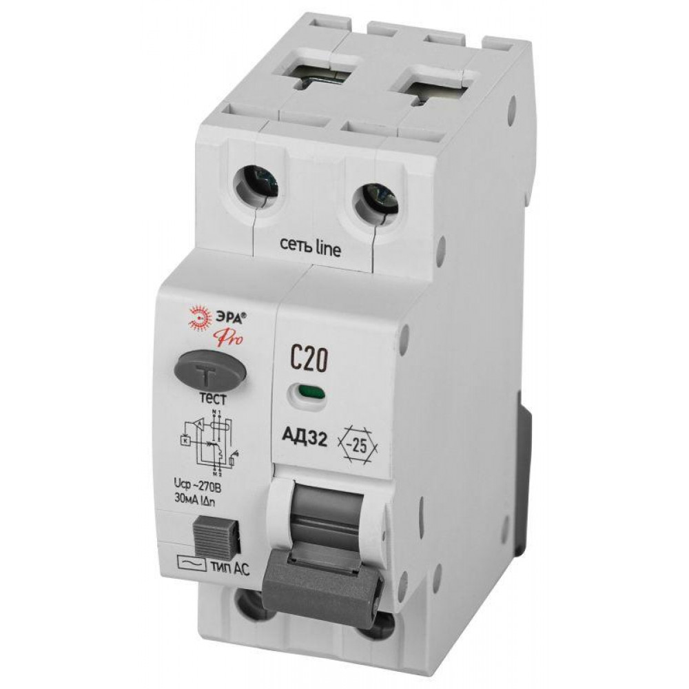 Выключатель автоматический дифференциального тока 1P+N C20 30мА тип АC защита 230В АВДТ 4.5кА PRO D32E2C20АC30P АД32 электронное Б0057353, Дифференциальная защита: УЗО, дифф блок