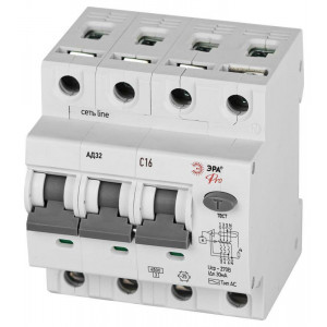 Описание Выключатель автоматический дифференциального тока 3P+N C16 30мА тип АC защита 230В АВДТ 4.5кА PRO D32E4C16АC30P АД32 электронное Б0057797