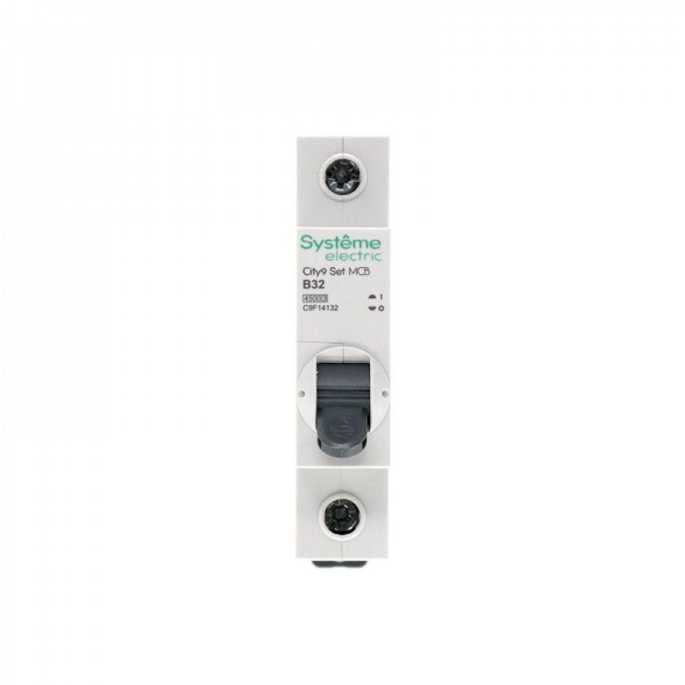 Автоматический выключатель серии City9 Set Systeme Electric, 1-полюсный, номинальный ток 32 А, характеристика B, Icn = 4.5 кА. Применяется в электрических сетях напряжением 230 В. Предназначен для защиты от перегрузок и токов короткого замыкания. Оснащен механизмом «мгновенной коммутации». Ударопрочный корпус из специального пластика с 6 металлическими заклепками. Безопасные клеммы исключают попадание кабелей в заклеммное пространство.