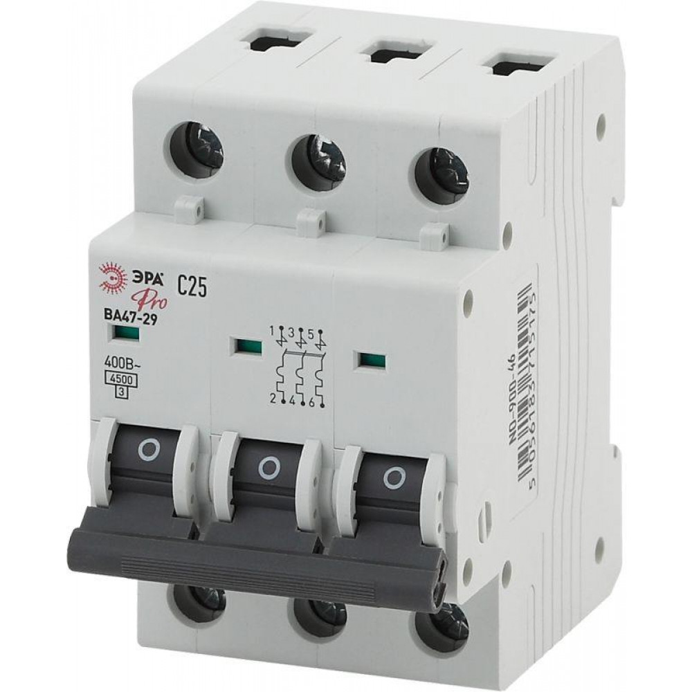 Описание Выключатель автоматический модульный 3п C 25А ВА47-29 Pro NO-900-46 ЭРА Б0031778