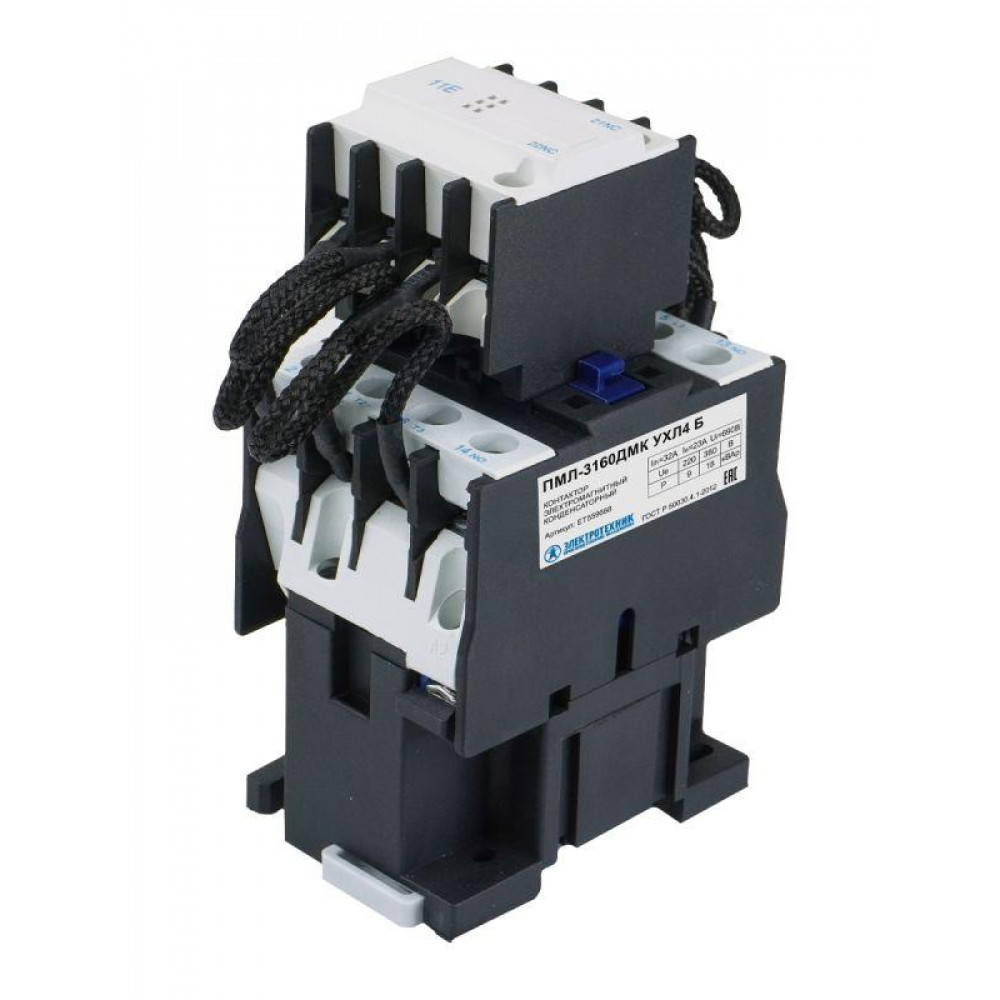 Описание Контактор ПМЛ-3160ДМК УХЛ4 Б 32А кат. 220В AC 1НО+1НЗ IP20 18кВАр ET559688