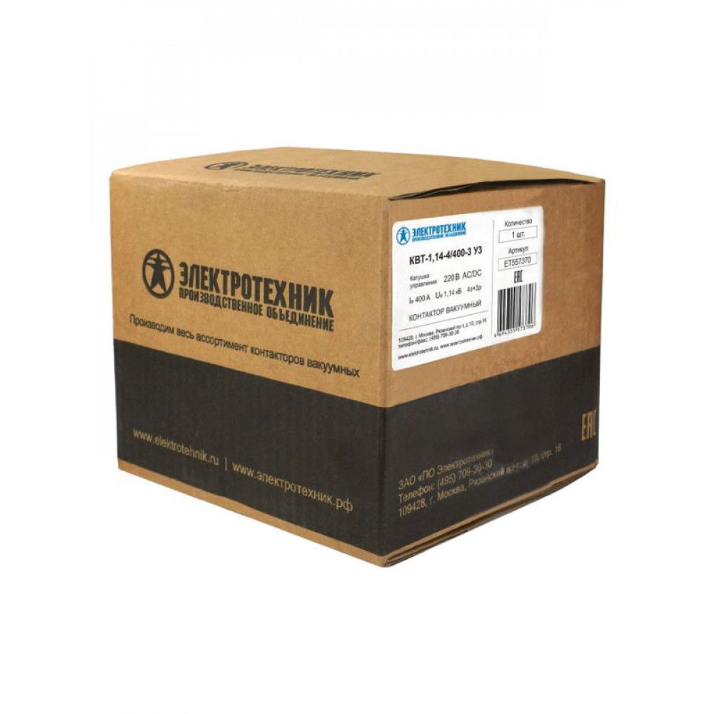 Описание Контактор вакуумный КВТ-1.14-4/400-3 У3 3п 400А кат. 220В 4НО+3НЗ IP00 без реле ET557370