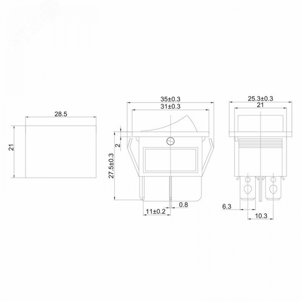 Выключатель клавишный 250V 16А (4с) ON-OFF красный с подсветкой (RWB-502, SC-767, IRS-201-1) предназначен для коммутации электрических цепей переменного тока напряжением до 250В. Клавишные (Рокерные) выключатели применяются в качестве комплектующих изделий различного электрооборудования (в сетевых фильтрах и удлинителях, аудио-оборудовании, блоках питания, электроустановках на различных производствах, автомобилях, и многих других местах). Такой клавишный переключатель имеет два положения. Принцип действия основан на перемещении клавиши в одну из позиций. Для переключения в нужное положение требуется приложить некоторые усилия на клавишу. Монтаж осуществляется без применения винтов на плоских панелях толщиной от 0.8мм до 3мм. Подключение контактов осуществляется плоской клеммой 6.6мм, либо с помощью пайки.