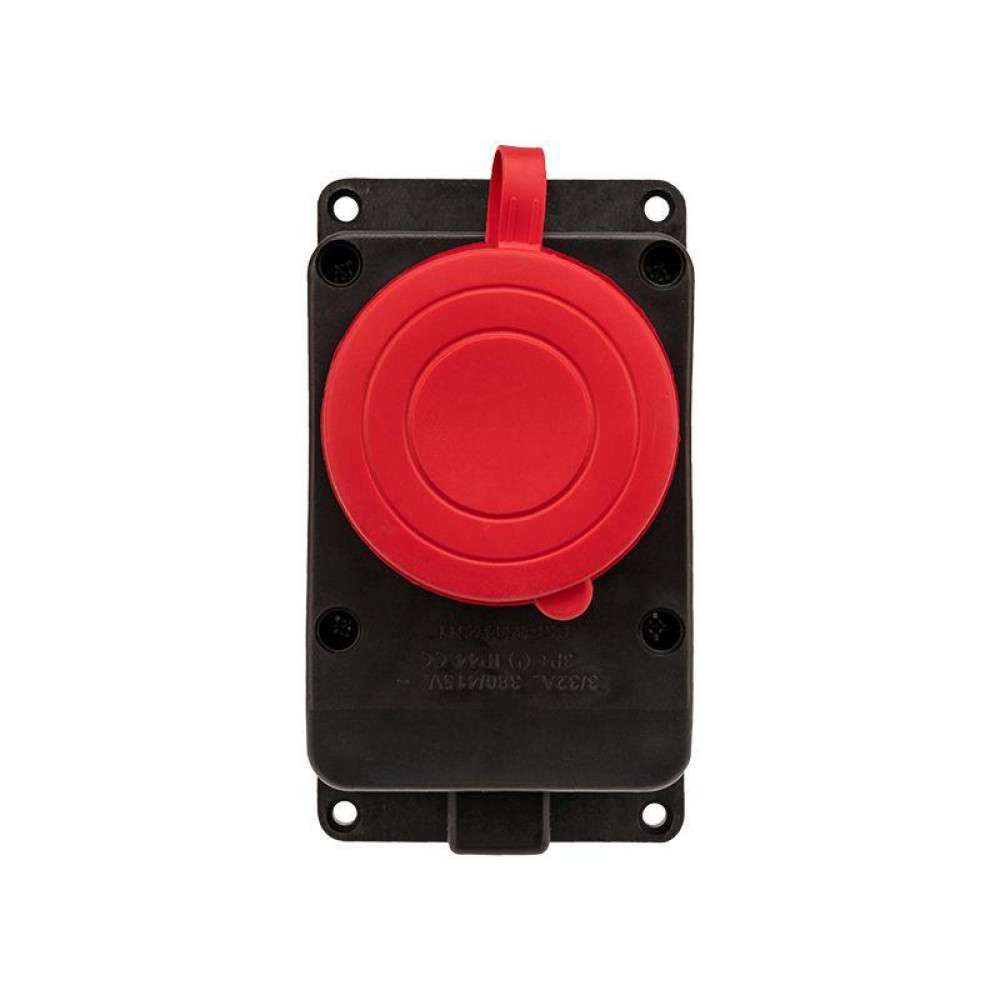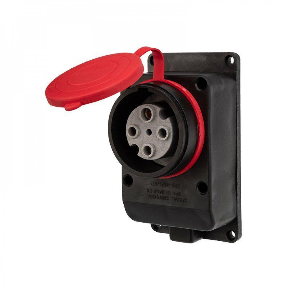 Описание Розетка влагозащ. настенная с крышкой 3P+PE 32А IP44 черн. каучук 111-007