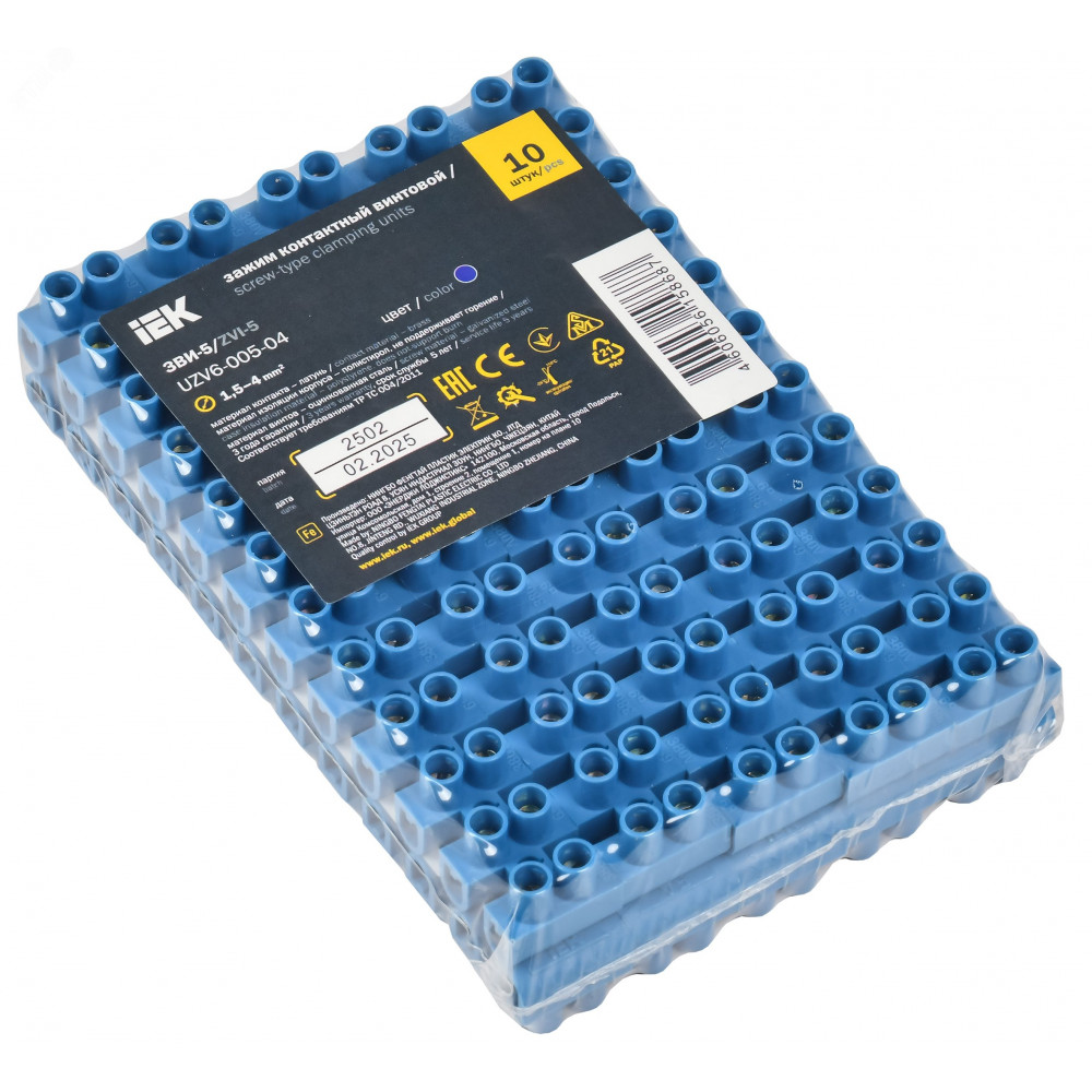Описание Колодка клеммная ЗВИ-5 н/г 1.5-4.0кв.мм 12 пар син. UZV6-005-04