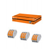 Рычажная клемма, соединительная, универсальная, 3 полюса, сечение проводника 0,08 - 4,0 мм кв., 250V, 32A,цвет корпуса: прозрачный, цвет рычагов: оранжевый,в упаковке 50 штук (Аналог 222-413)