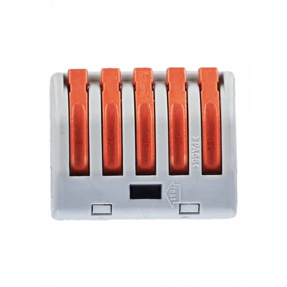 Клемма соединительная на 5 контактов, рычажный прижим проводов сечением 0.08-4мм2