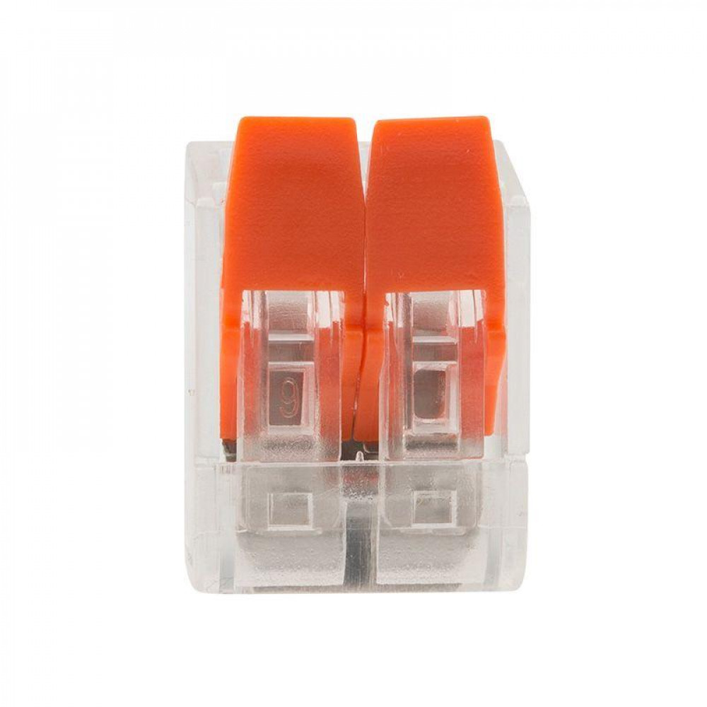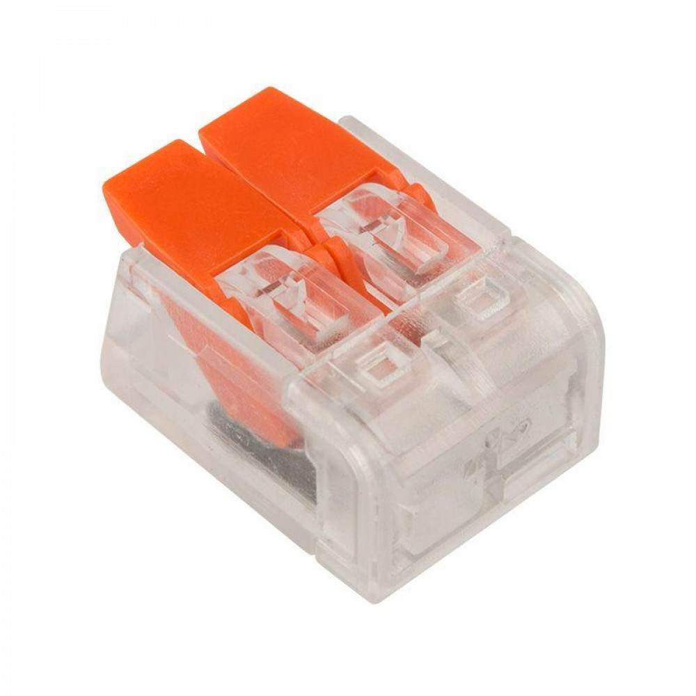 Рычажная клемма, соединительная, универсальная, 2 полюса, сечение проводника 0,08 - 4,0 мм кв., 250V, 32A,цвет корпуса: прозрачный, цвет рычагов: оранжевый,в упаковке 50 штук (Аналог 221-412)