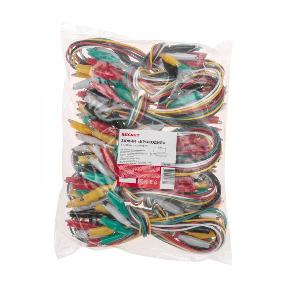 Зажим "крокодил" 5А 40мм с проводом 10 пар 16-0036, комплект из 10 проводов с зажимами на концах