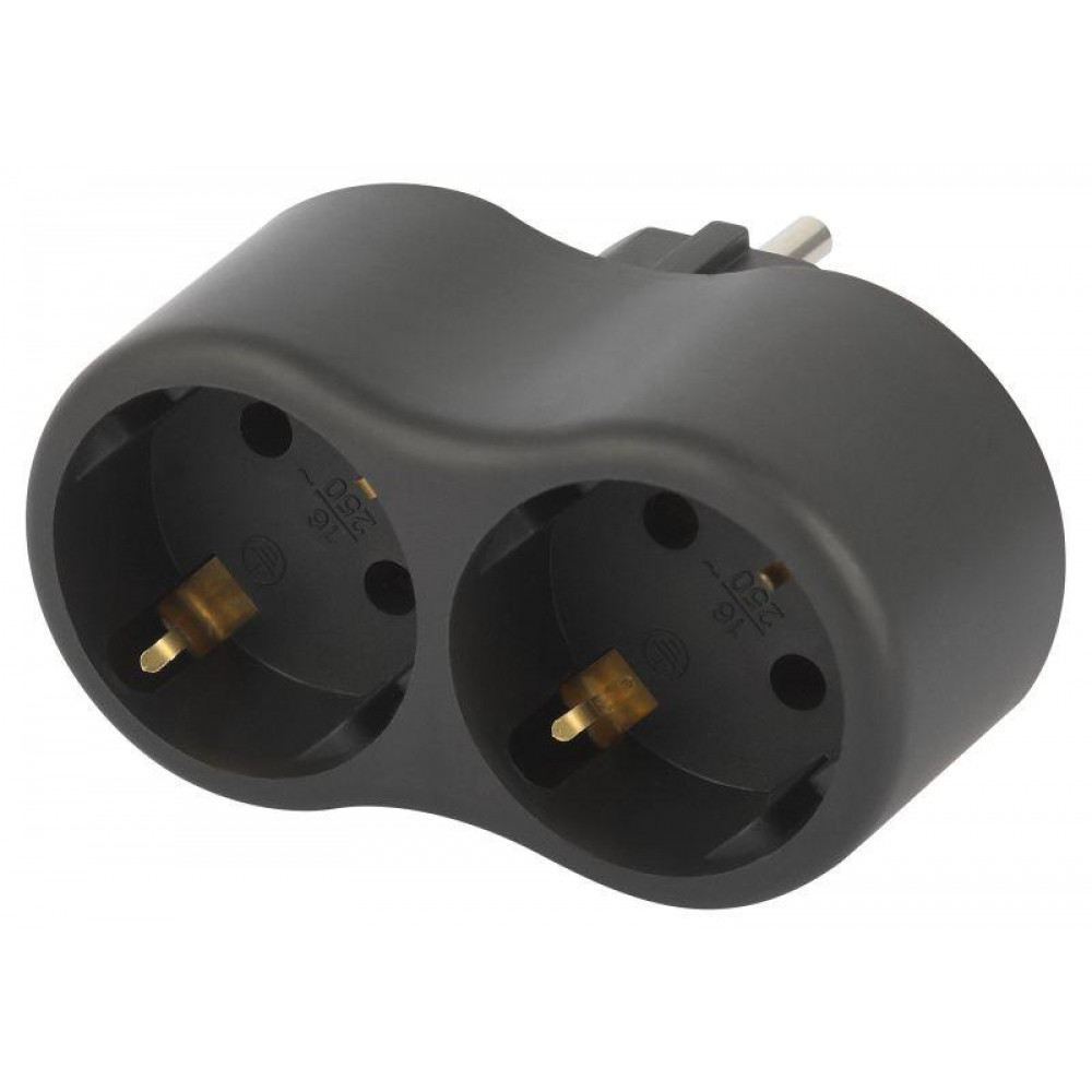 Разветвитель электрический SPx-2e-B на 2 розетки с заземл. 16А черн. Б0059722, Вилка, колодка