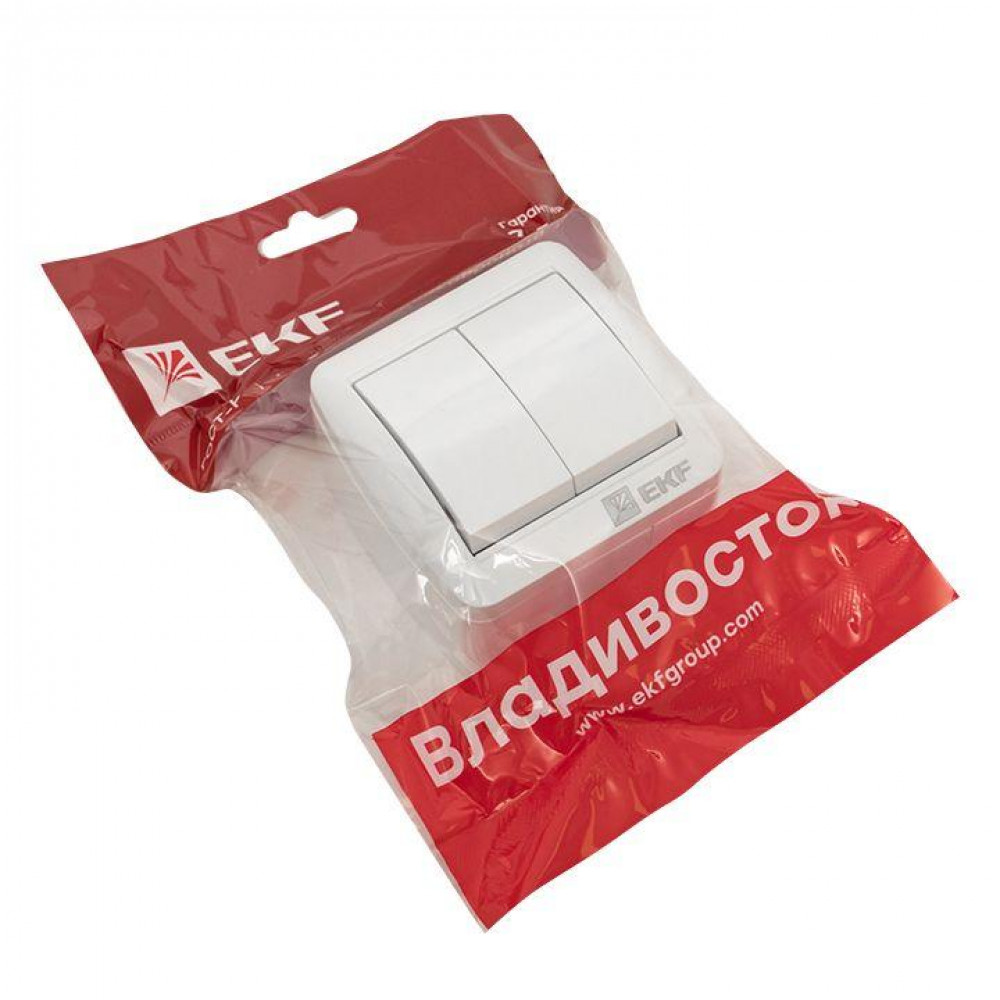 Выключатель 2-кл. ОП Владивосток 10А IP54 бел. PROxima EQR16-023-30-54, Выключатель и переключатель открытого монтажа
