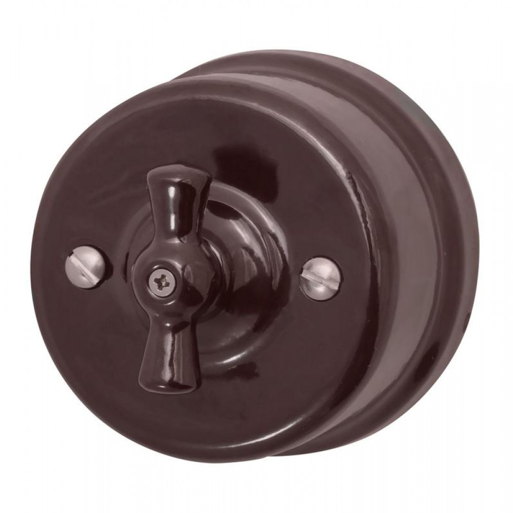 Выключатель поворотный 1-кл ОП ретро керамика корич. B1-200-02, Выключатель и переключатель открытого монтажа