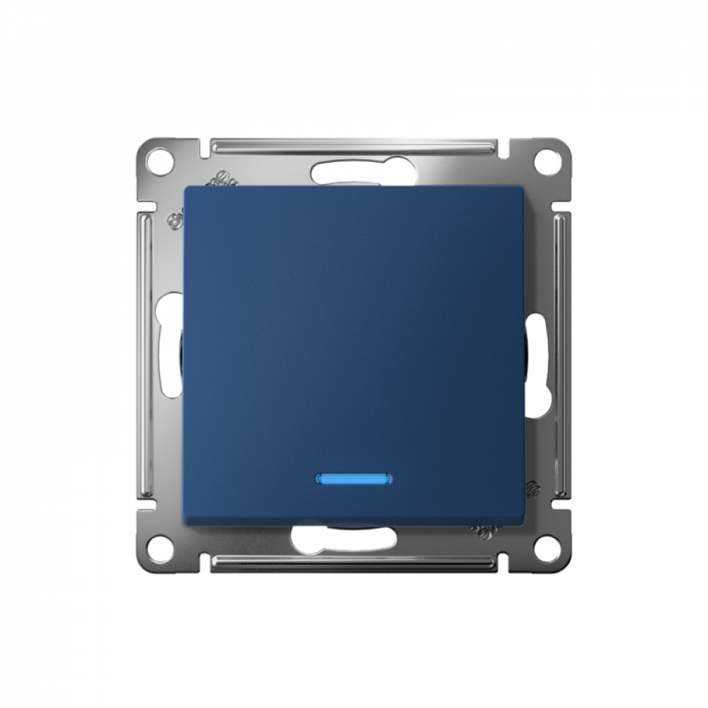 Механизм выключателя 1-клавишного с подсветкой Systeme Electric (ранее Schneider Electric) серии AtlasDesign в цвете аквамарин подходит для сетей 250 В, на ток 10 А.