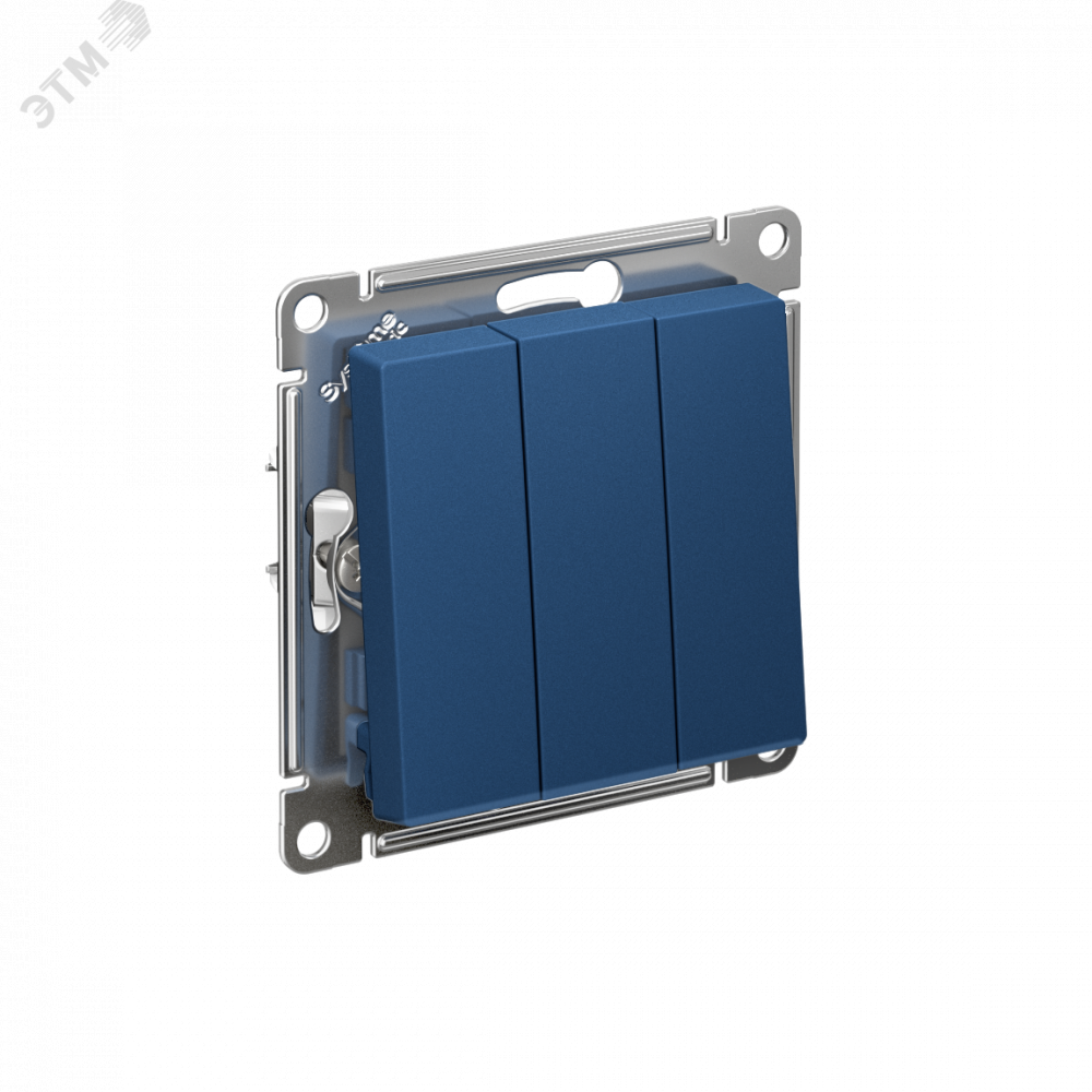 Механизм Systeme Electric (ранее Schneider Electric) серии AtlasDesign в цвете аквамарин выключателя 3-клавишного подходит для сетей 250 В, на ток 10 А.