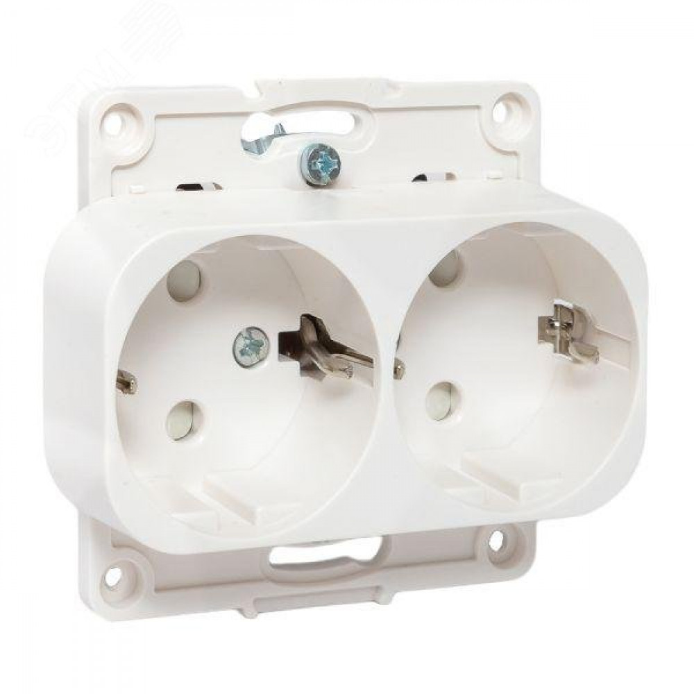 Розетка 2-м СП Стокгольм 16А IP20 с заземл. защ. шторки механизм бел. PROxima EYR16-128-10, Розетка скрытого монтажа