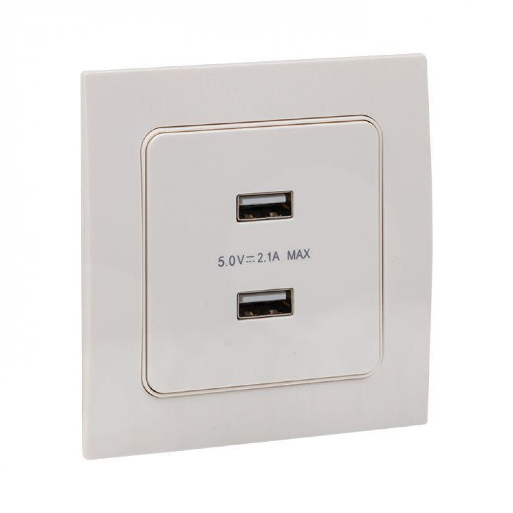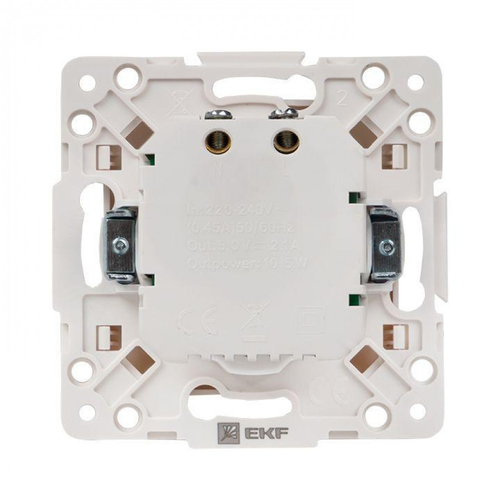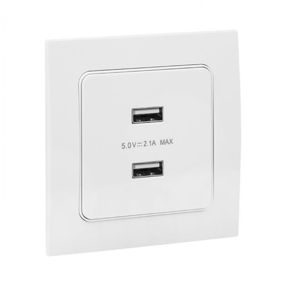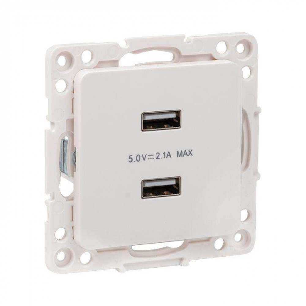 Описание Розетка USB 2-м Стокгольм 2.1А механизм бел. PROxima EYR16-028-10-2USB