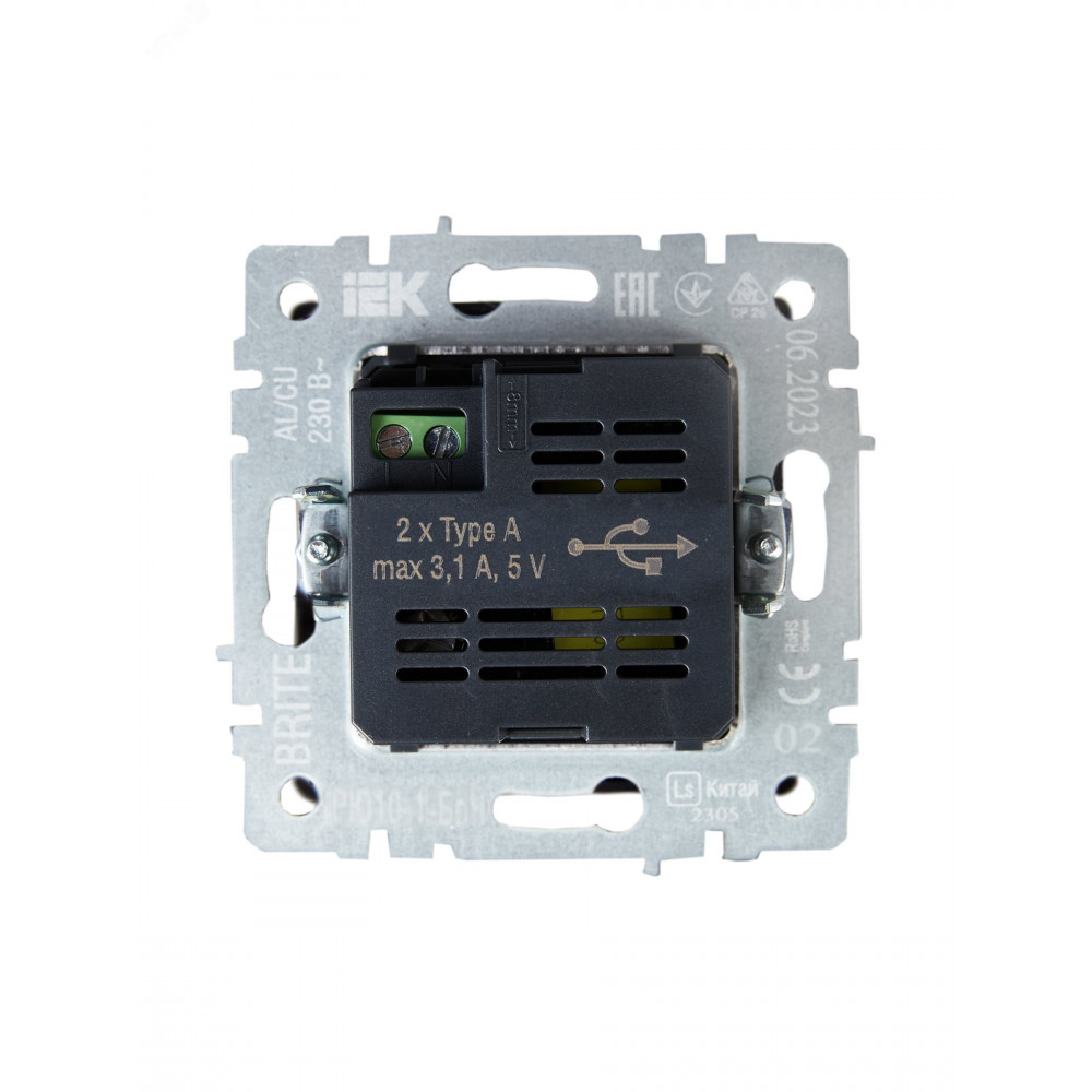 Розетка BRITE USB A+A 3.1А РЮ10-1-БрЧ черн. BR-U21-D31-K02, Розетка скрытого монтажа
