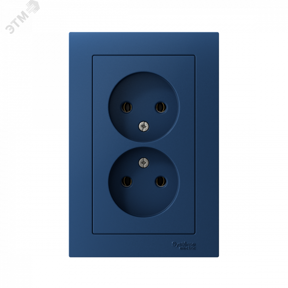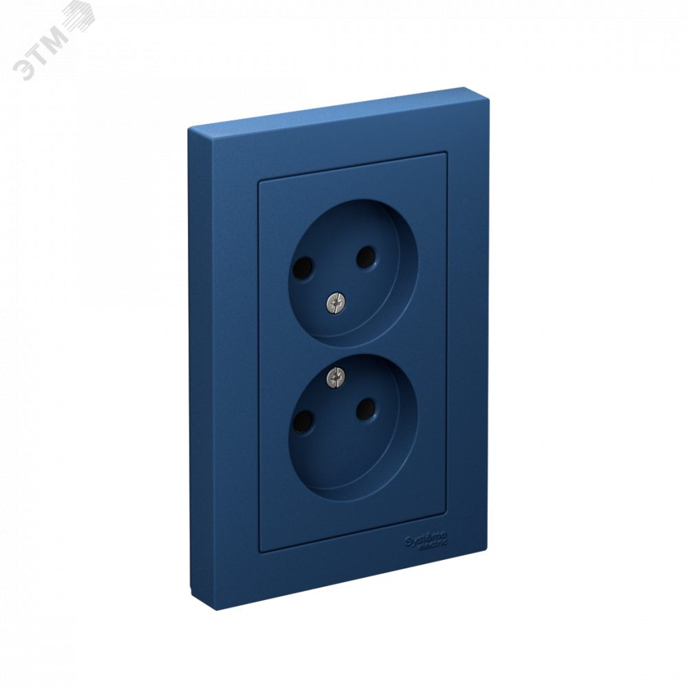 Розетка двойная Systeme Electric (ранее Schneider Electric) серии AtlasDesign (в сборе, цвет аквамарин) без заземления и без шторок подходит для сетей 250 В, на ток 16 А.