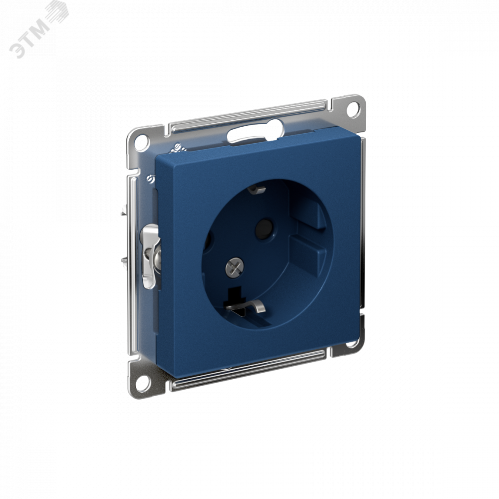 Механизм Systeme Electric (ранее Schneider Electric) серии AtlasDesign в цвете аквамарин розетки одинарной с заземлением и шторками подходит для сетей 250 В, на ток 16 А.