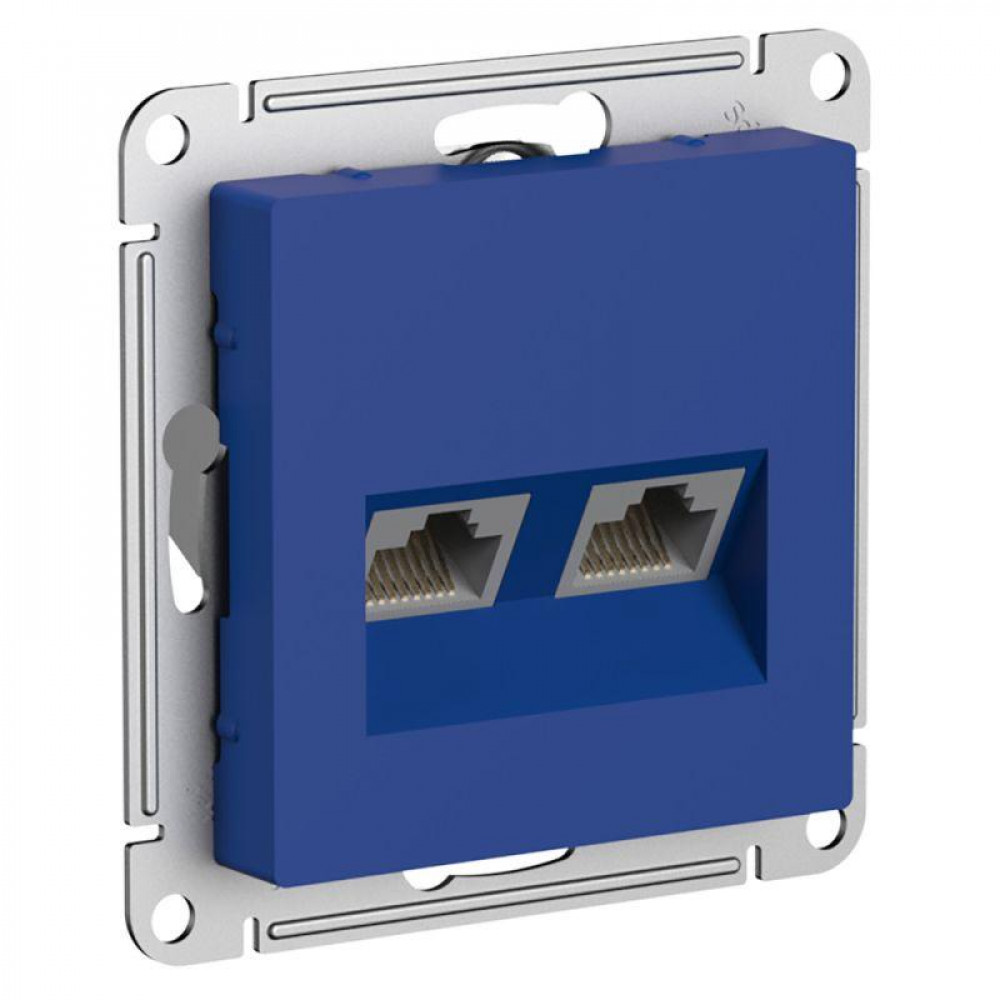 Описание Розетка компьютерная 2-м AtlasDesign RJ45+RJ45 кат.5E механизм аквамарин SE ATN001185