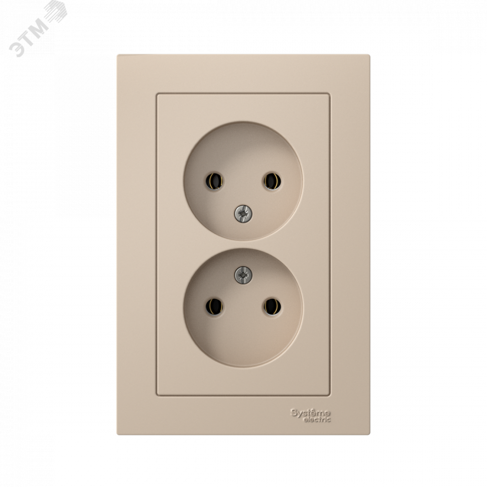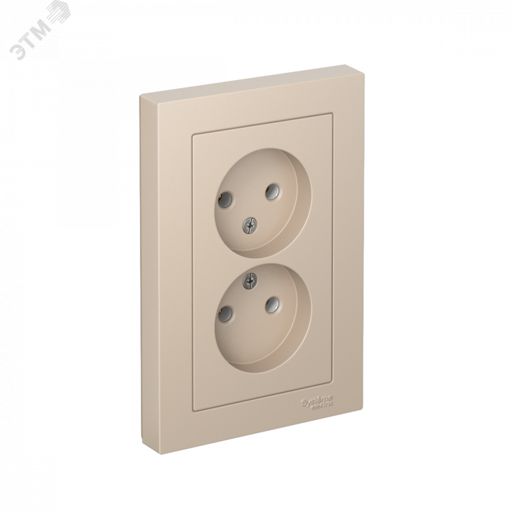 Розетка двойная Systeme Electric (ранее Schneider Electric) серии AtlasDesign (в сборе, цвет ПЕСОЧНЫЙ) без заземления и без шторок подходит для сетей 250 В, на ток 16 А.