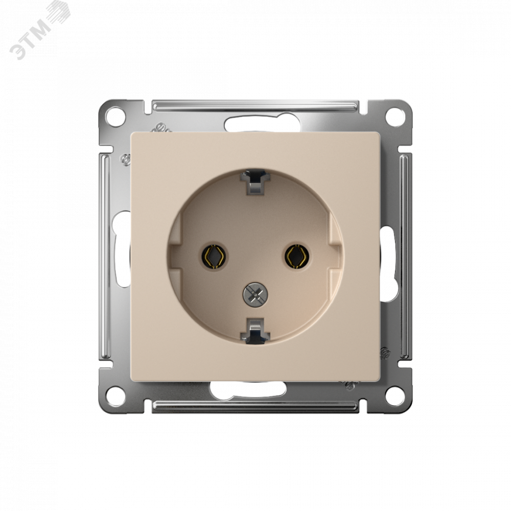 Механизм Systeme Electric (ранее Schneider Electric) серии AtlasDesign в цвете ПЕСОЧНЫЙ розетки одинарной с заземлением и без шторок подходит для сетей 250 В, на ток 16 А.