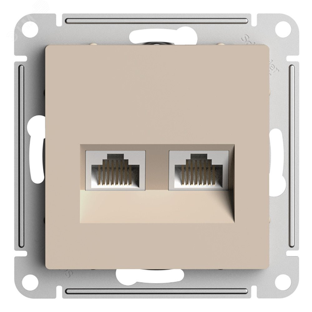 Розетка компьютерная 2-м AtlasDesign RJ45+RJ45 кат.5E механизм песочн. SE ATN001285, Розетка скрытого монтажа
