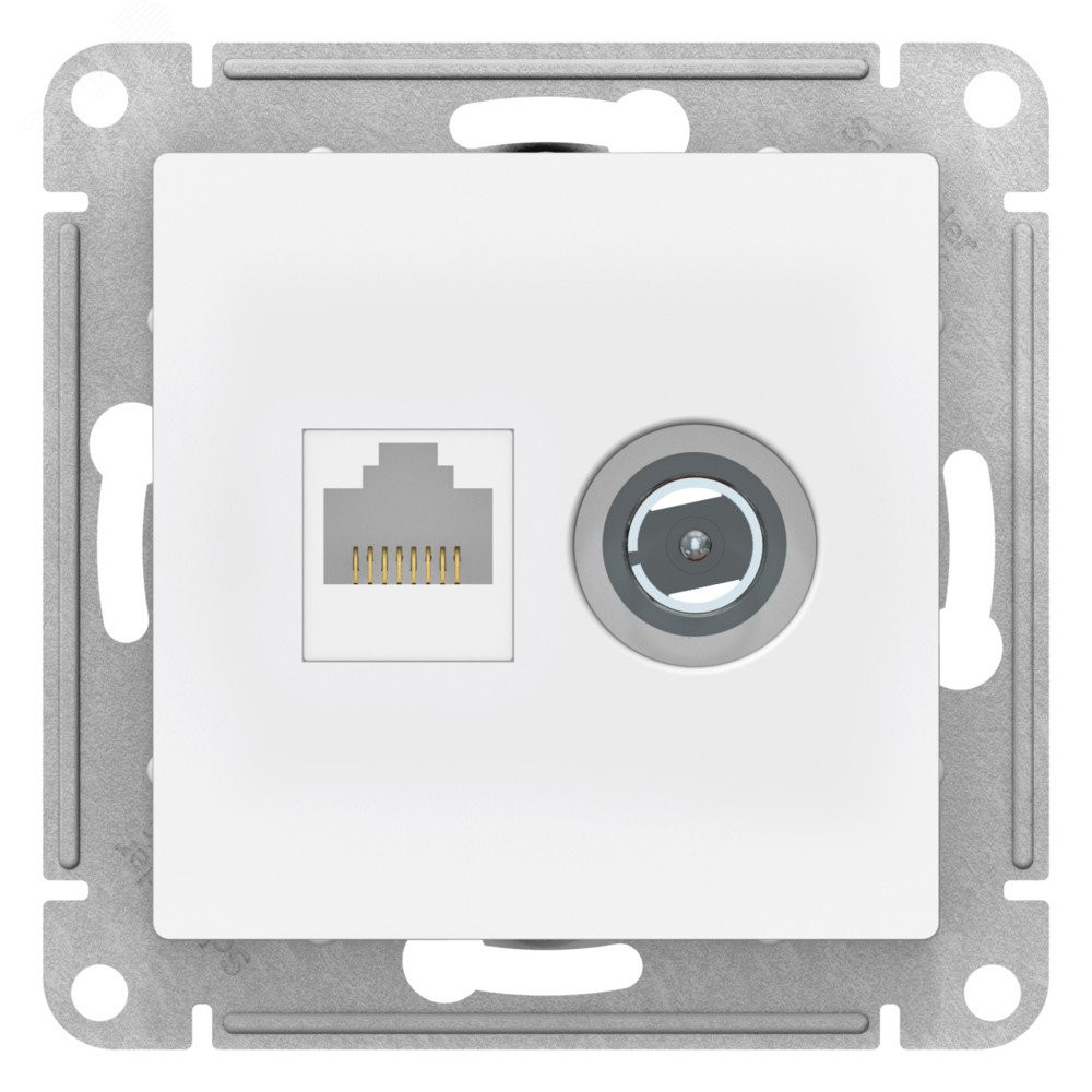 Механизм Systeme Electric (ранее Schneider Electric) серии AtlasDesign в цвете ЛОТОС двойной розетки разъёмами RJ45 категория 5е и TV предназначен для удобного и быстрого подключения вашего компьютера и телевизора к соответствующим сетям.