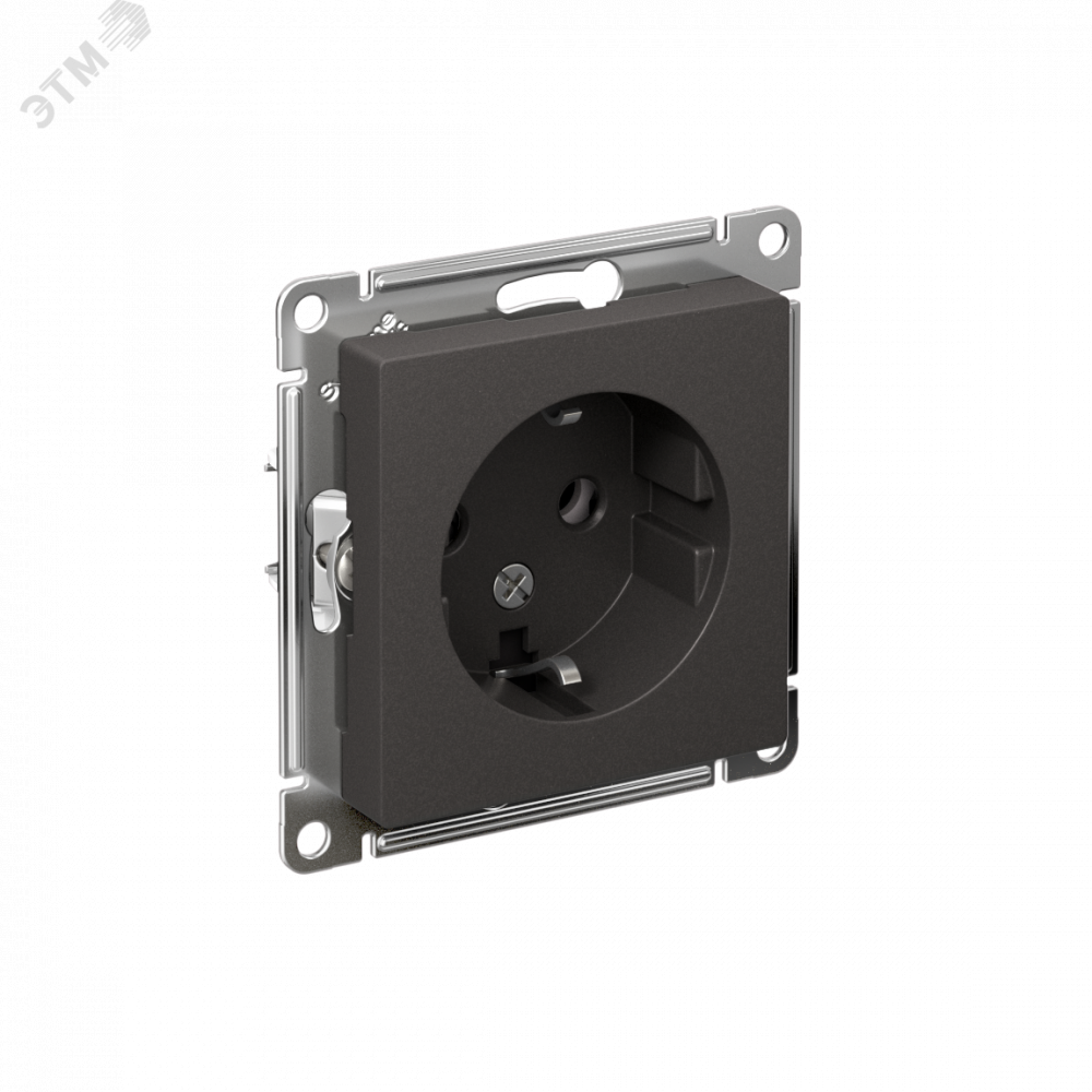 Механизм Systeme Electric (ранее Schneider Electric) серии AtlasDesign в цвете БАЗАЛЬТ розетки одинарной с заземлением и без шторок подходит для сетей 250 В, на ток 16 А.