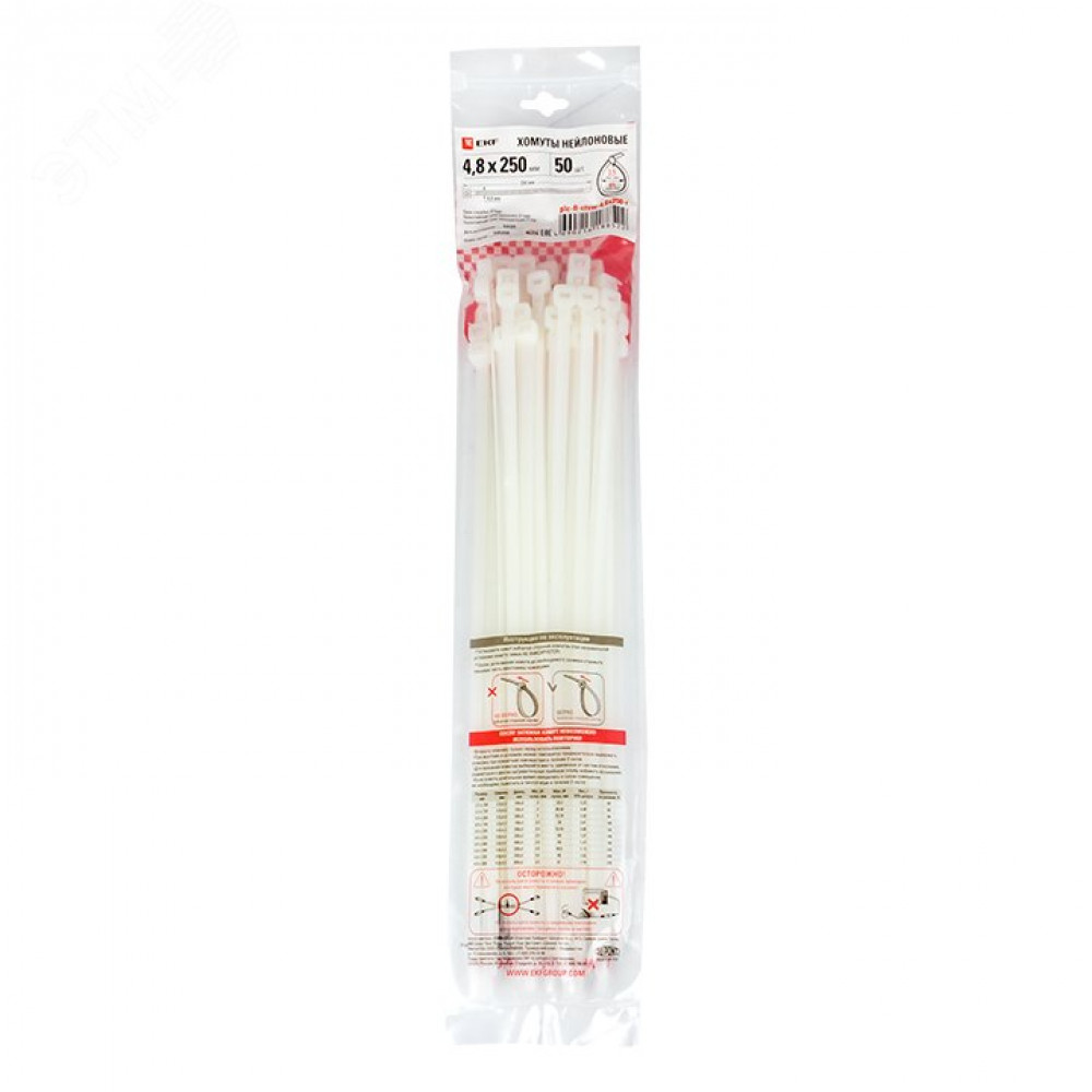 Описание Хомут P6.6 4.8х250 FlexLock стандартный бел. (уп.100шт) PROxima plc-fl-ctsw-4.8x250