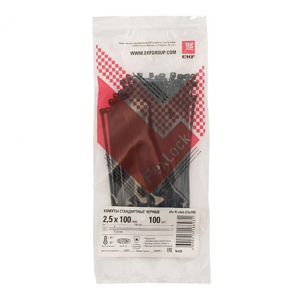 Описание Хомут P6.6 2.5х100 FlexLock стандартный черн. (уп.100шт) PROxima plc-fl-ctsb-2.5x100
