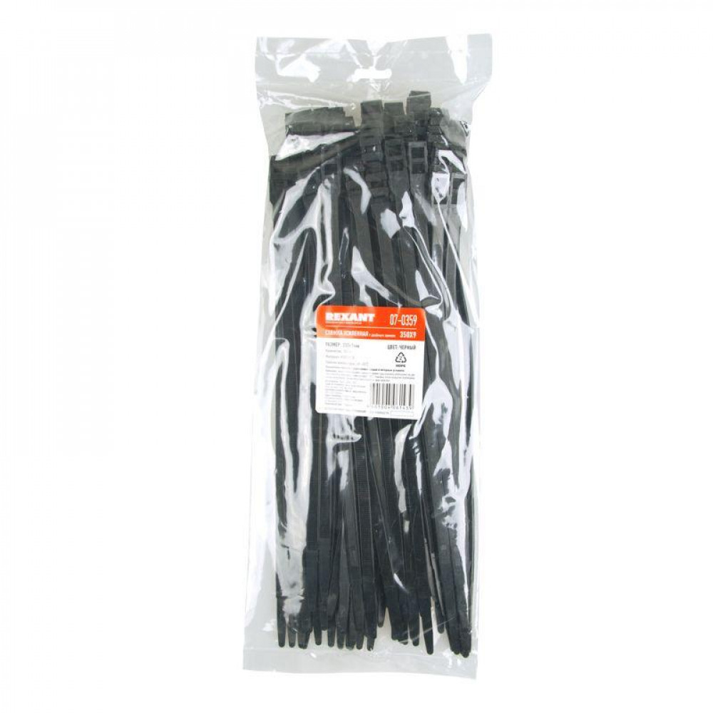 Хомут кабельный 9х350 усиленный с двойным горизонтальным замком nylon-12 черн. (уп.100шт) 07-0359, Хомут и стяжка кабельная