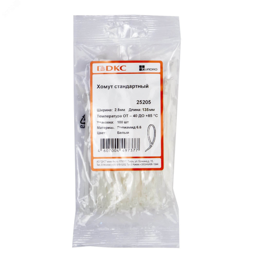 Описание Хомут кабельный 2.5х130 полиамид бел. (уп.100шт) 25205SR