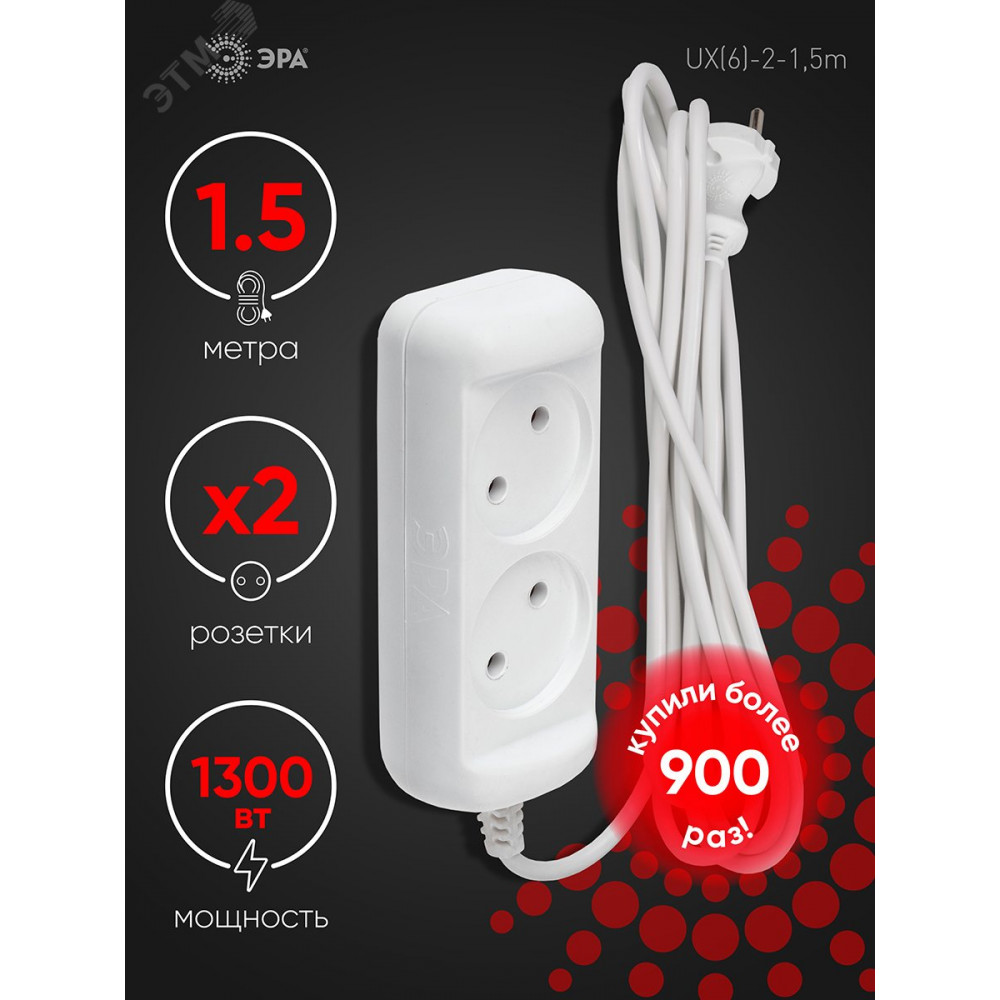 ← Удлинитель электрический U-5s-3m-2x1 без заземления c выключателем 5 розеток 3м ПВС 2x1мм2 10А Б0044056