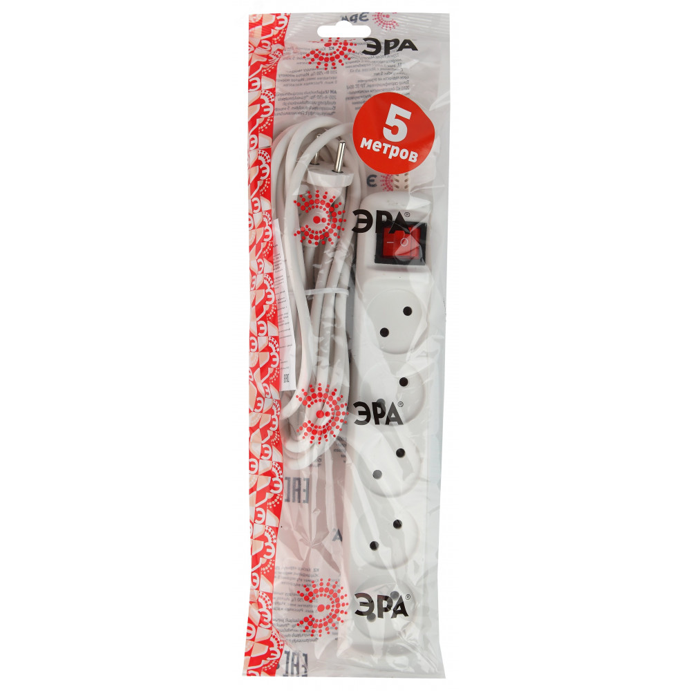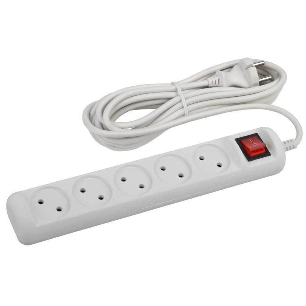 Удлинитель электрический U-5s-5m-2x1 без заземления c выключателем 5 розеток 5м ПВС 2x1мм2 10А Б0044057, Удлинитель, сетевой фильтр