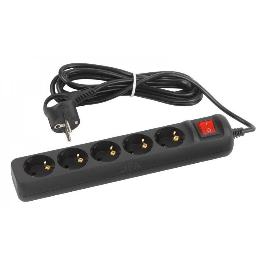 Удлинитель электрический Эра UX-5es-1,5m-B с заземлением, с выключателем черный, 5розеток.Провод ПВС, 3x0,75мм2, 1,5м. Рассчитан на максимальную мощность 10А/2200 Вт. Удлинитель Эра станет Вашим надежным помощником, если Ваши любимые электроприборы находятся далеко от розеток. Провод в удлинителях Эра сделан из 100% меди, что делает его абсолютно пожаробезопасным. Корпус выполнен из ударопрочного и негорючего пластика (полипропилен). Вилка обеспечена кольцом для удобного извлечения ее из розетки. Модель удлинителя на 10А позволяет подключить бытовые приборы общей нагрузкой до 2200Вт. Дизайн удлинителя разработан в России командой Эра Style.