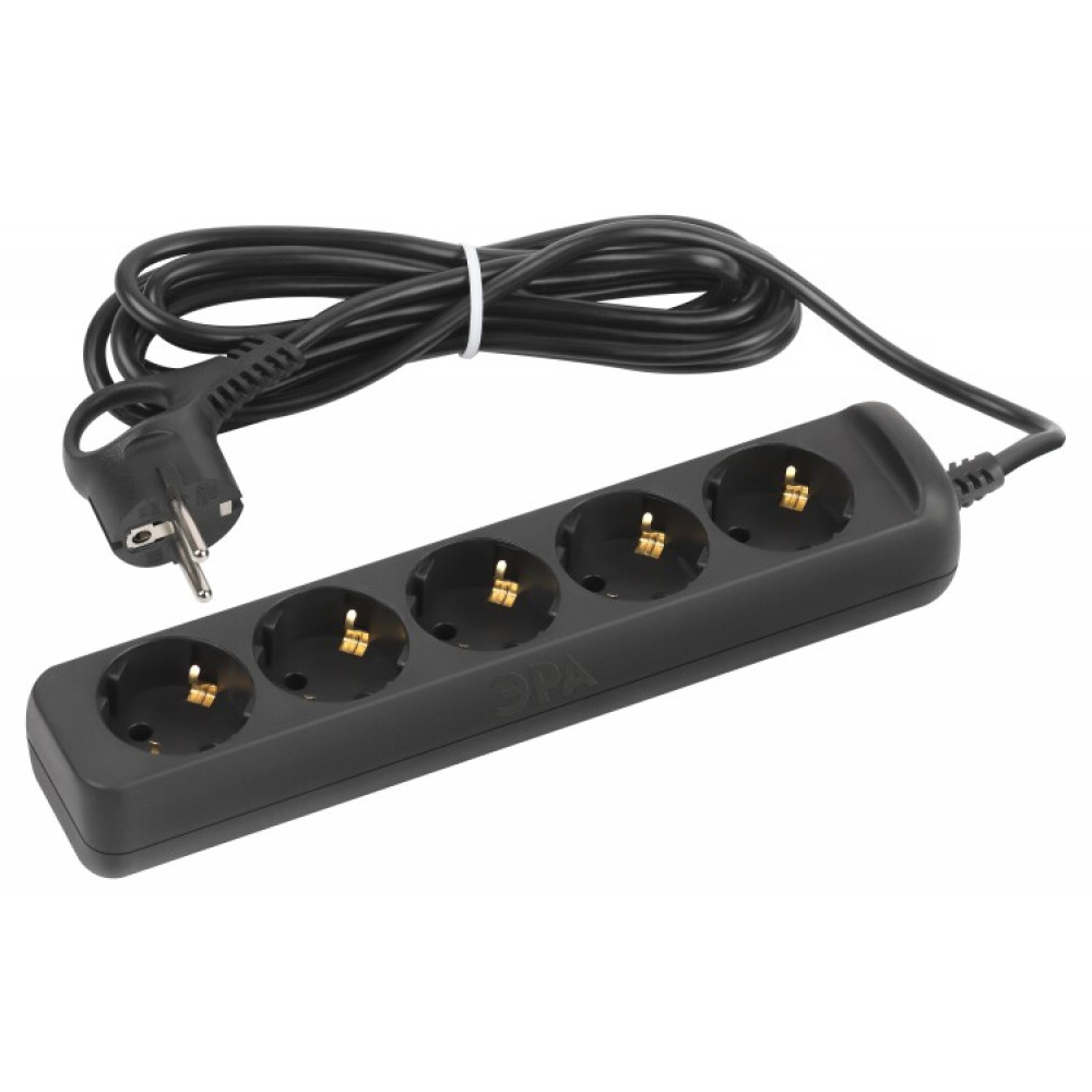 Удлинитель электрический UX-5e-3m-B с заземлением 5 розеток 3м ПВС 3х0.75мм2 10А черн. Б0057725, Удлинитель, сетевой фильтр