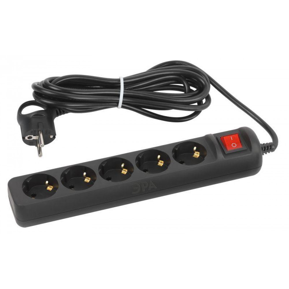Удлинитель электрический UX-5es-5m-B с заземлением с выключателем 5 розеток 5м ПВС 3х0.75мм2 10А черн. Б0057732, Удлинитель, сетевой фильтр