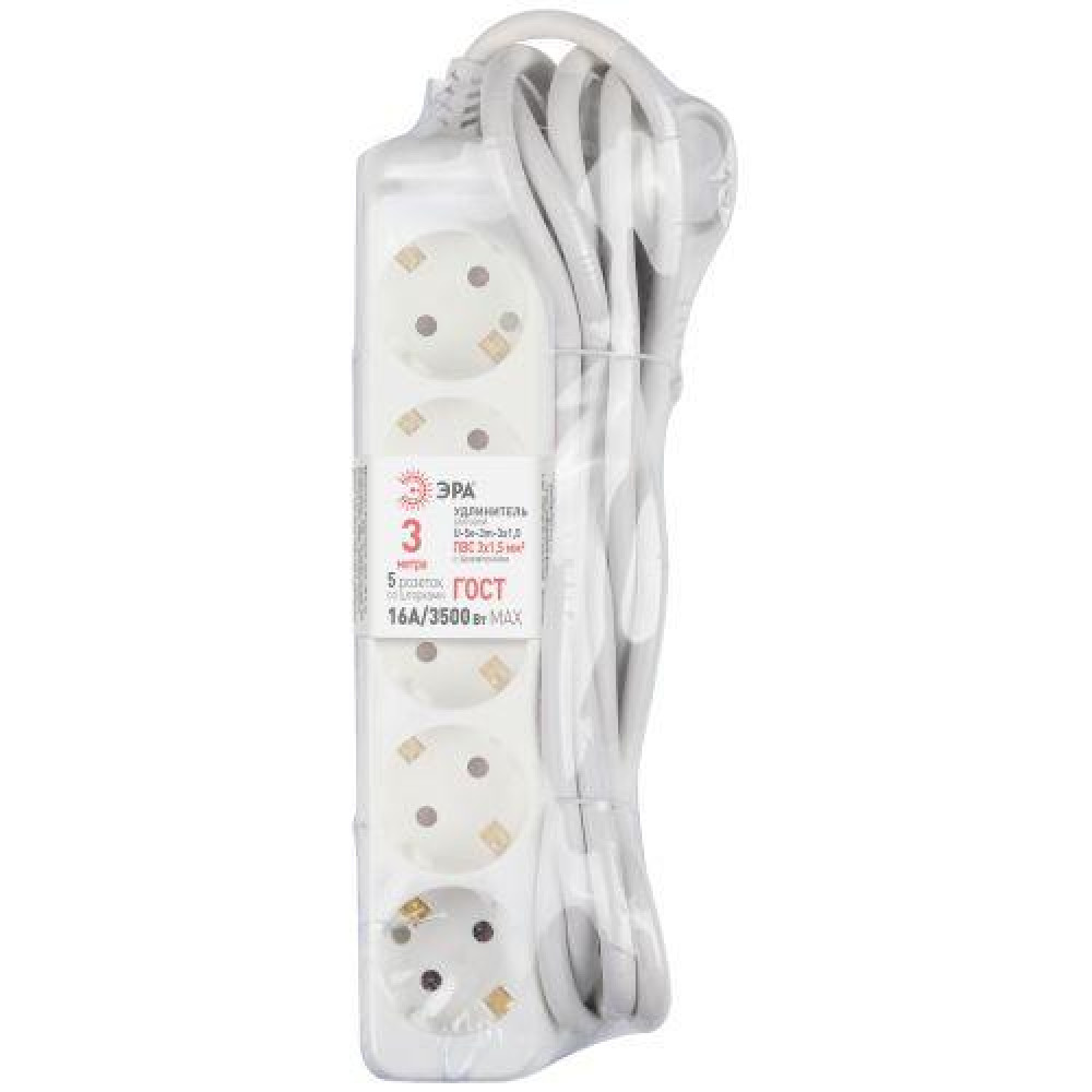 Доставка Удлинитель Россия U-5e-3m-3x1,5 Удлин-ль c заземл., 5гн, 3м, ПВС, 3х1,5мм2, 16А Б0044038