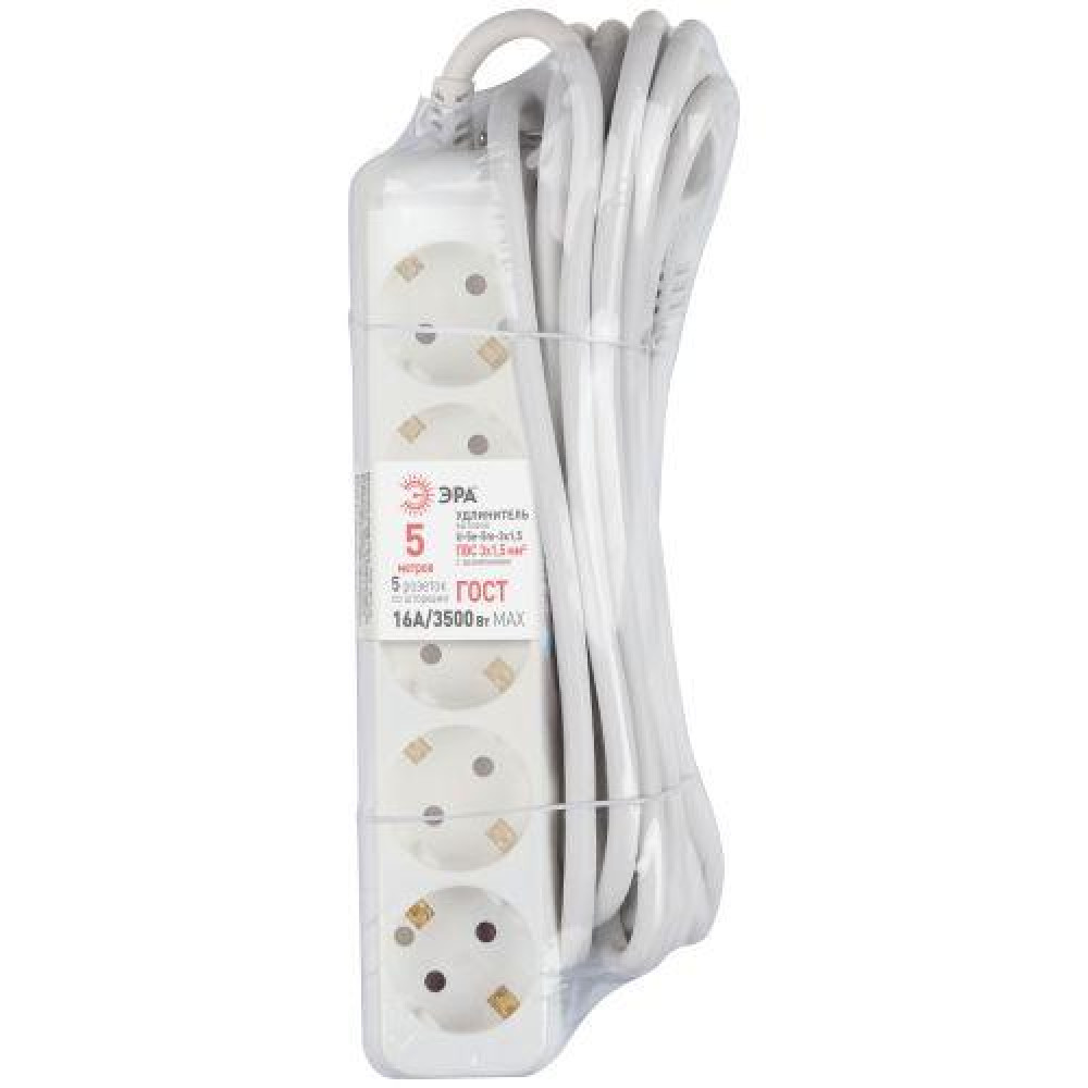 Доставка Удлинитель Россия U-5e-5m-3x1,5 Удлин-ль c заземл., 5гн, 5м, ПВС, 3х1,5мм2, 16А Б0044039