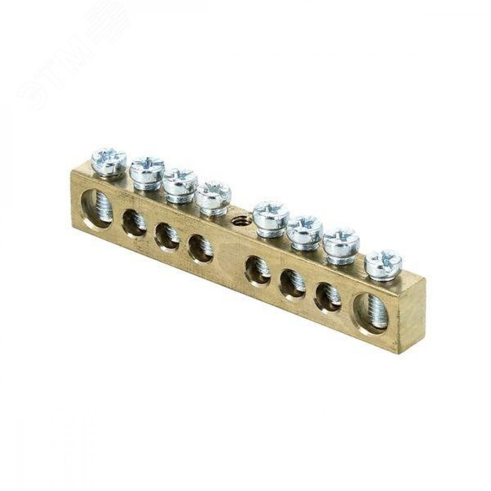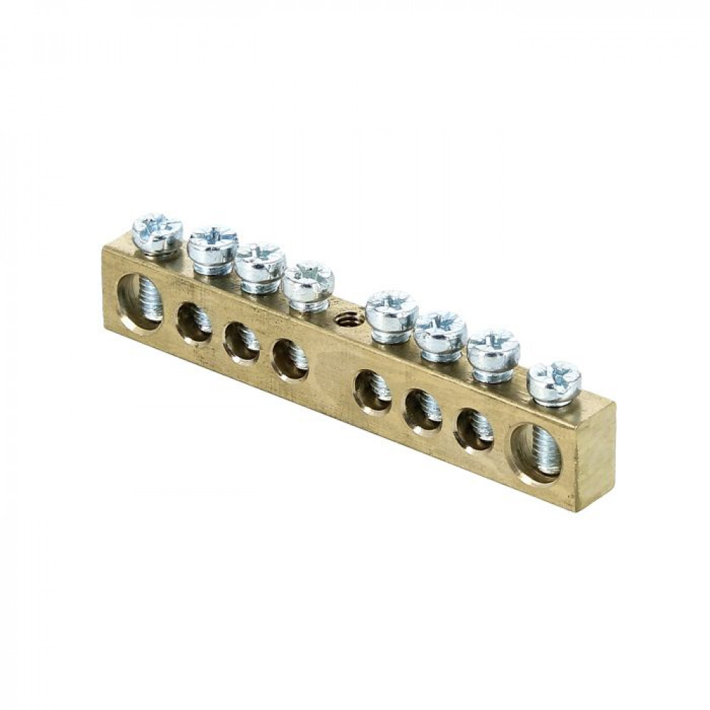 Шина PEN "ноль-земля" 8х12 8 отвер. латунь крепеж по центру PROxima sn0-125-8-c, Блок клеммный и нулевая шина