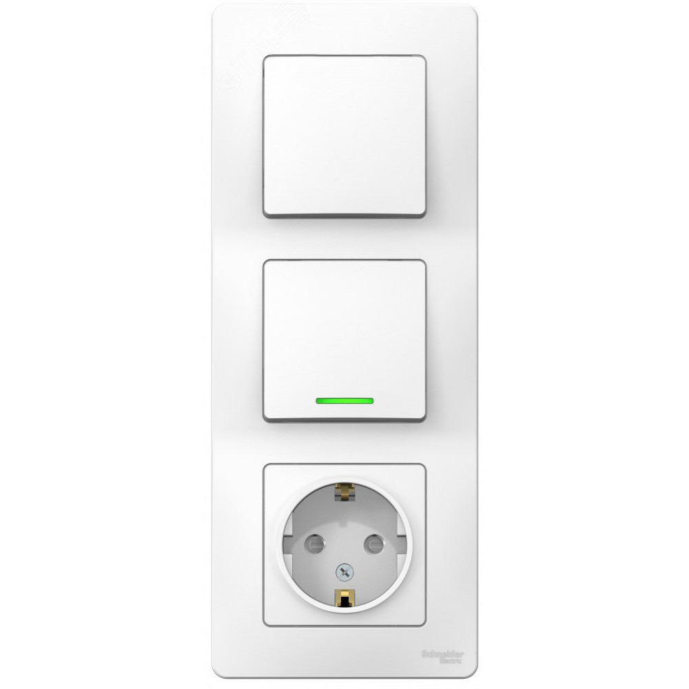 Блок СП Blanca (розетка с заземл. защ. шторки 16А 250В + 1-кл. выкл. с подсветкой + 1-кл. выкл.) бел. SE BLNBS101111, Блок совмещенный скрытого монтажа