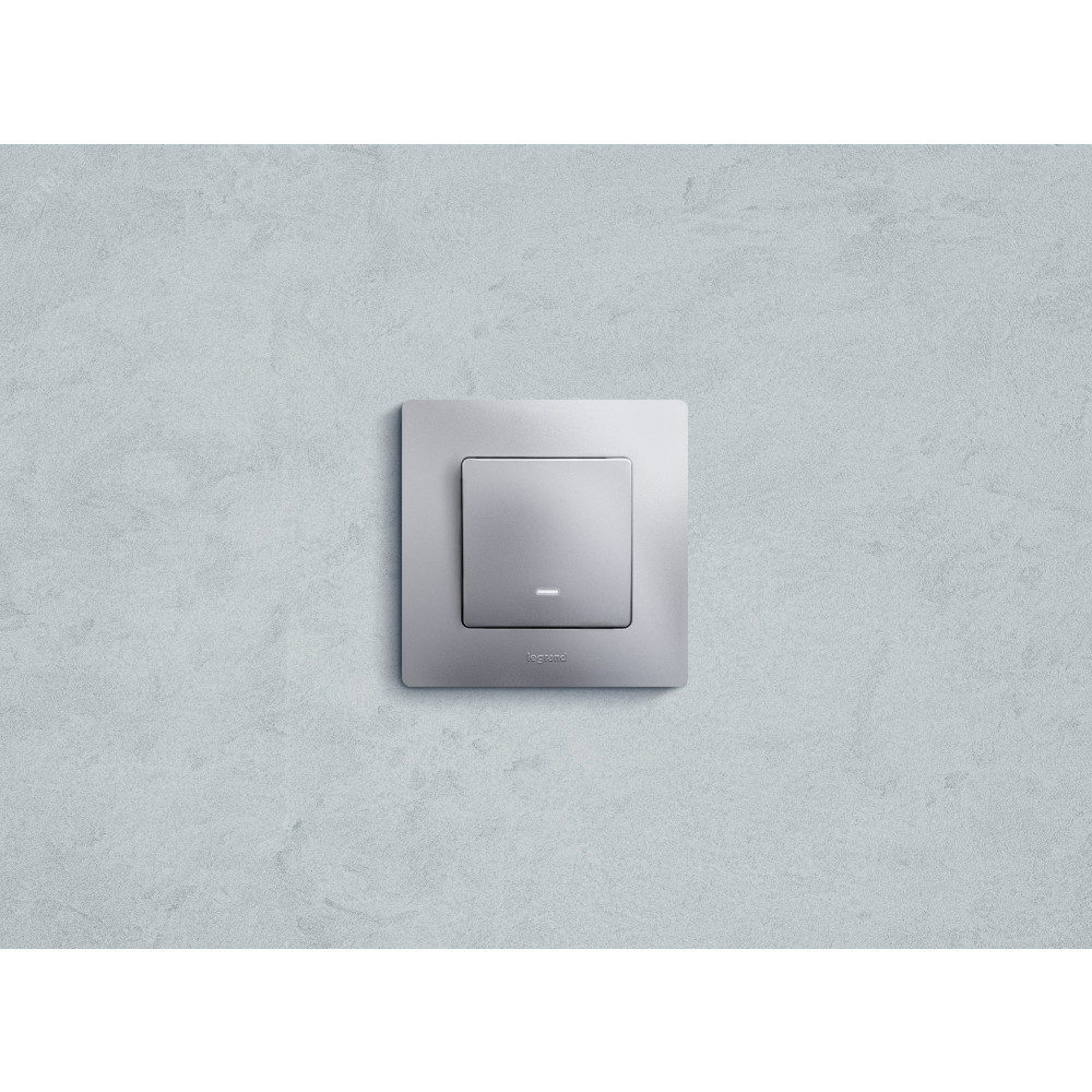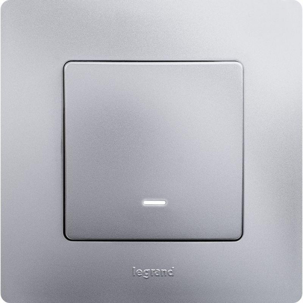 Выключатель 1-кл. СП Etika 10А IP20 250В 10AX с подсветкой/индикацией безвинтов. зажимы механизм алюм. Leg 672403, Выключатель и переключатель скрытого монтажа