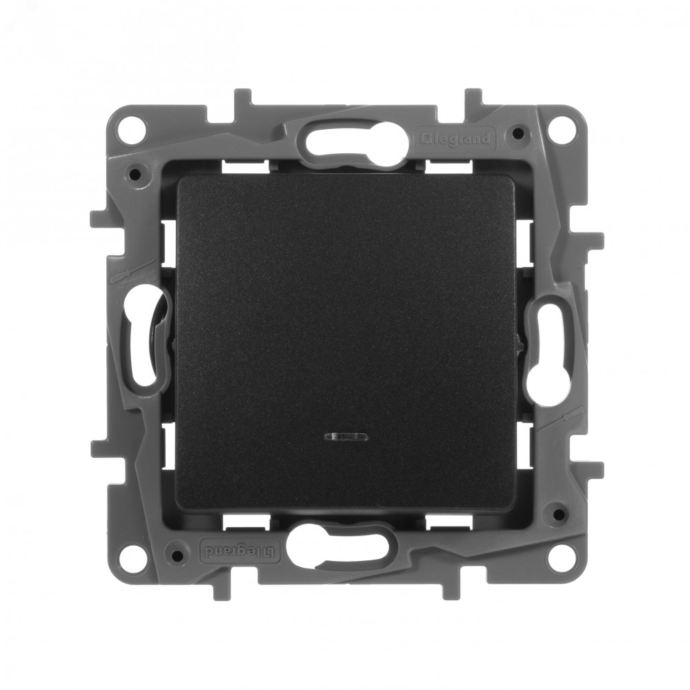 Описание Выключатель 1-кл. СП Etika 10А IP20 250В 10AX с подсветкой/индикацией авт. зажимы механизм антрацит Leg 672603