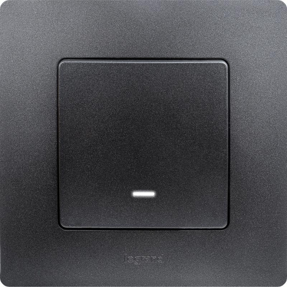 Выключатель 1-кл. СП Etika 10А IP20 250В 10AX с подсветкой/индикацией авт. зажимы механизм антрацит Leg 672603, Выключатель и переключатель скрытого монтажа