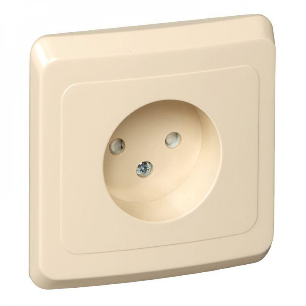 Розетка 1-м СП Этюд 16А IP20 250В без заземл. защ. шторки крем. SE PC16-002K, Розетка скрытого монтажа