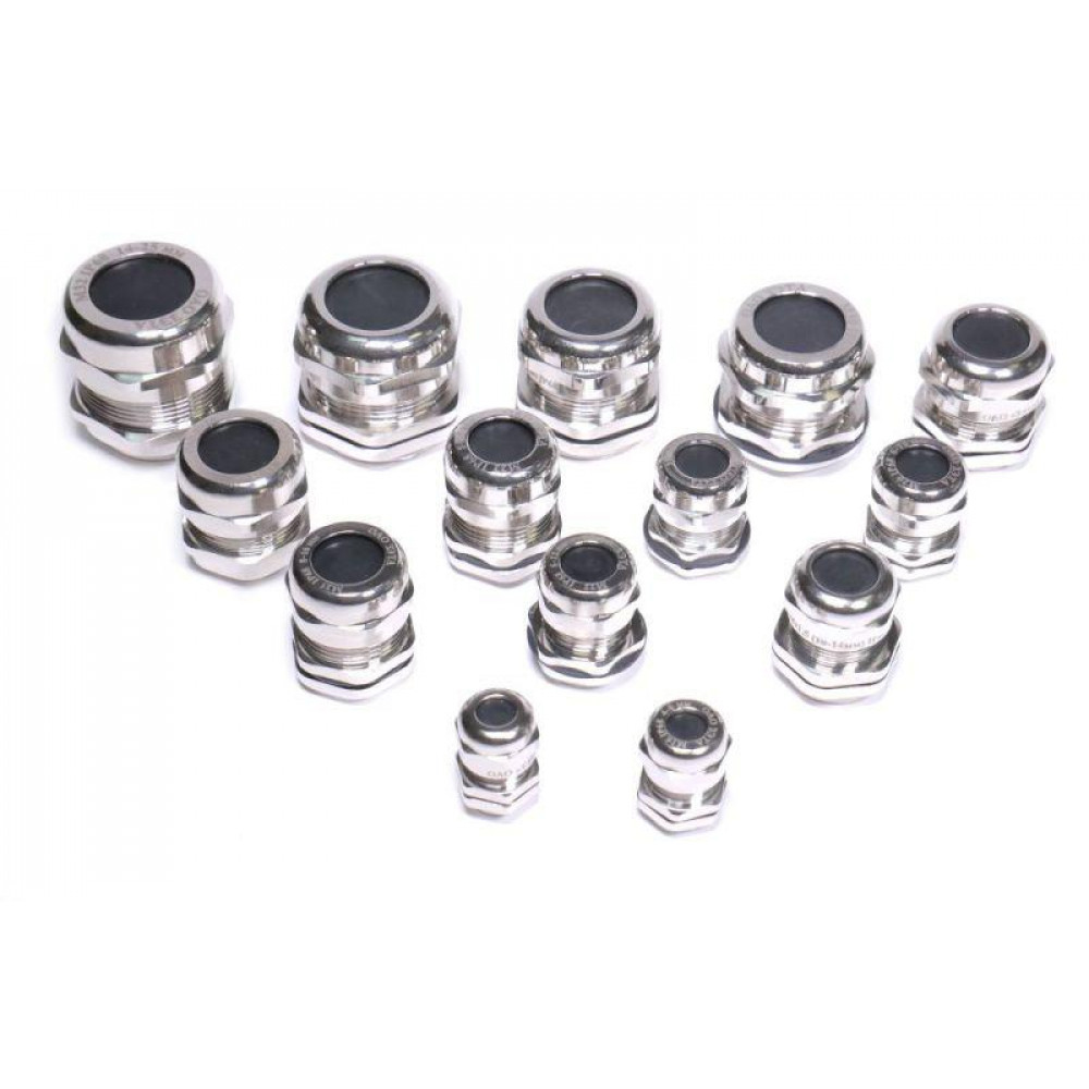 Кабельный ввод латунный с метрической резьбой ''М'' предназначен для ввода проводов и небронированных кабелей круглого сечения в электрощитовое оборудование с целью защиты проводников от механического повреждения и защиты самой сборки от проникновения пыли и влаги в месте ввода. Кабельный ввод М имеет степень защиты IP66 / IP67 / IP68. Кабельные вводы типа М производятся в двух исполнениях - исполнение 1 - с уплотнительным кольцом круглого сечения, исполнение 2 - с уплотнительным кольцом прямоугольного сечения. Состав комплекта - гайка, уплотнительное кольцо, корпус, резиновая уплотнительная втулка, пластиковая зажимная втулка, защитная заглушка-пыльник, накидная гайка.