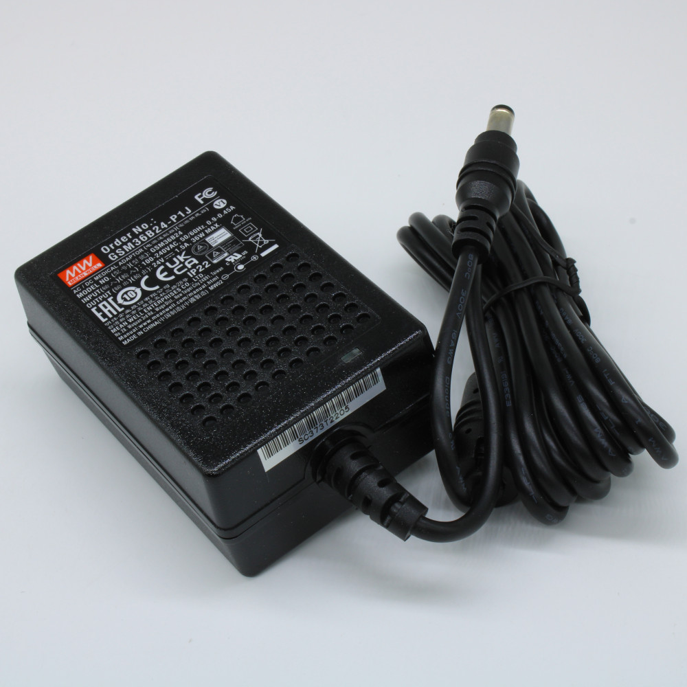 GSM36B24-P1J, AC-DC, 36Вт, сетевой адаптер, выход 24В/1.5А, вход 80...264В AC, 47...63 Гц, 113...370B DC, изоляция 4000B AC, 79x54x33мм, -25...+60C медицинского применения (2xMOPP)